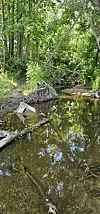 Han forklarer at siden vannstanden i elva går opp og ned hadde plast festet seg til greiner og buskas over elva.