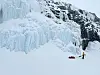 ISFOSS: Det var snødrev, tåke og mildvær da vi gikk over det lange Rondvatnet. På sørsiden passerte vi en enorm frossen foss.Bjørn. A. Esaissen